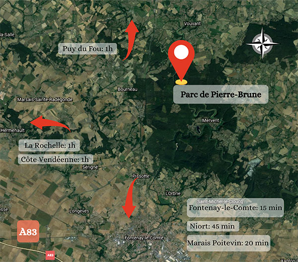 • Pour les cyclistes, un stationnement pour vélos est prévu à l’entrée du site. Plus d’infos sur les sentiers vélos, rendez-vous sur: https://vendeevelo.vendee-tourisme.com/